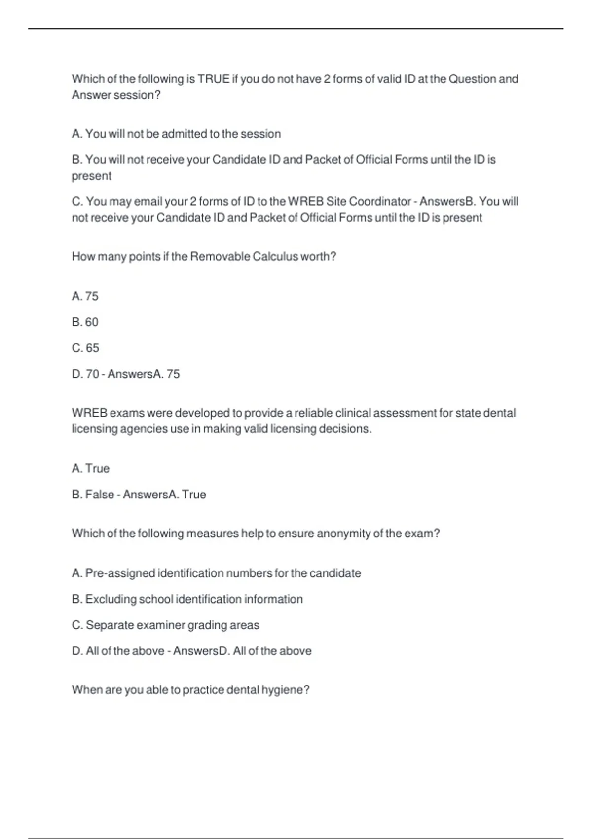 Identification must be verified prior to admittance to any WREB Candidate Question and