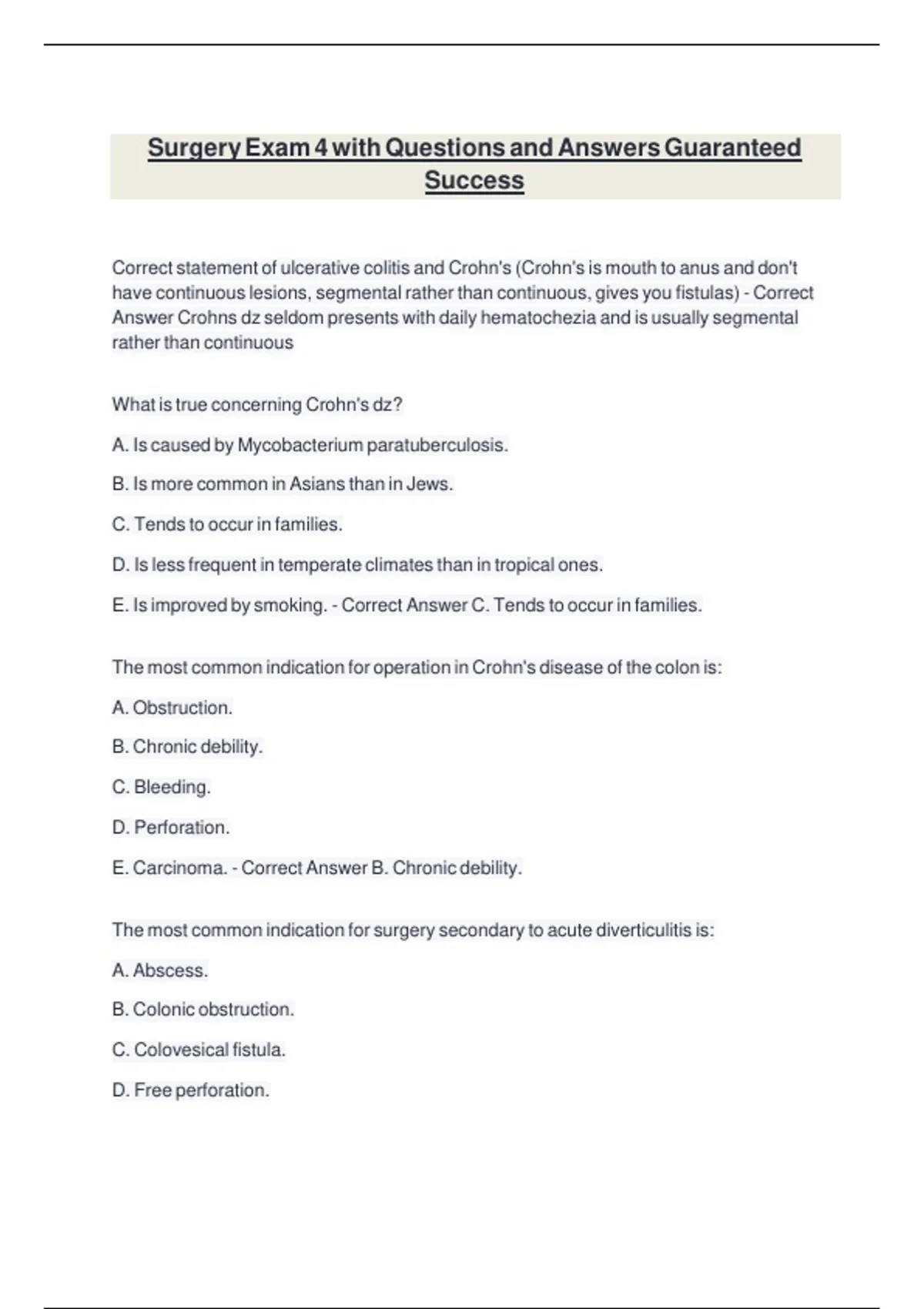 Surgery Exam 4 with Questions and Answers Guaranteed