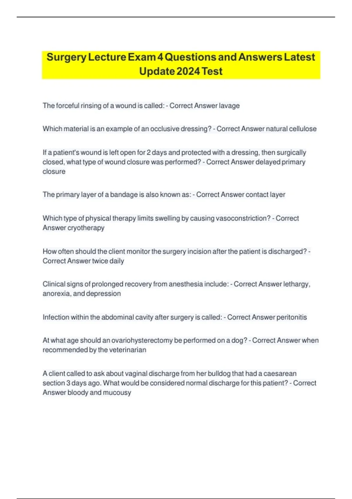 Surgery Lecture Exam 4 Questions and Answers Latest