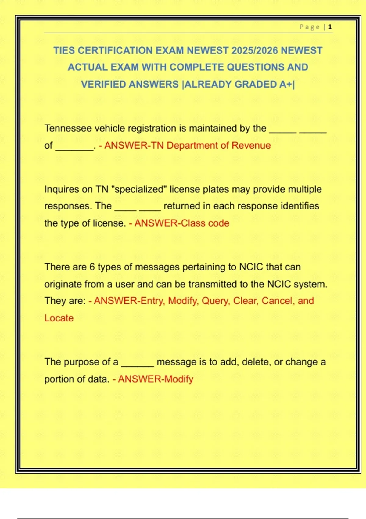 TIES CERTIFICATION EXAM NEWEST 2025/2026 NEWEST