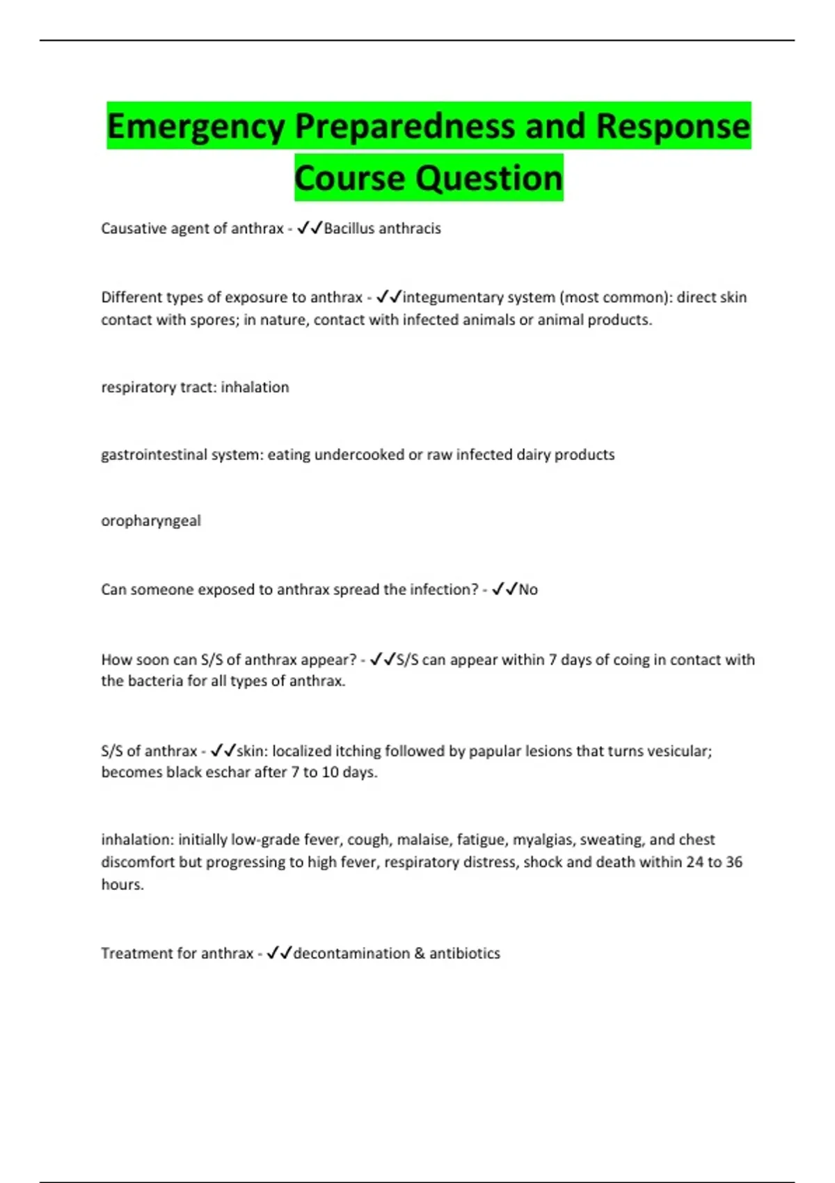 Treatment for anthrax - ✔✔decontamination & antibiotics