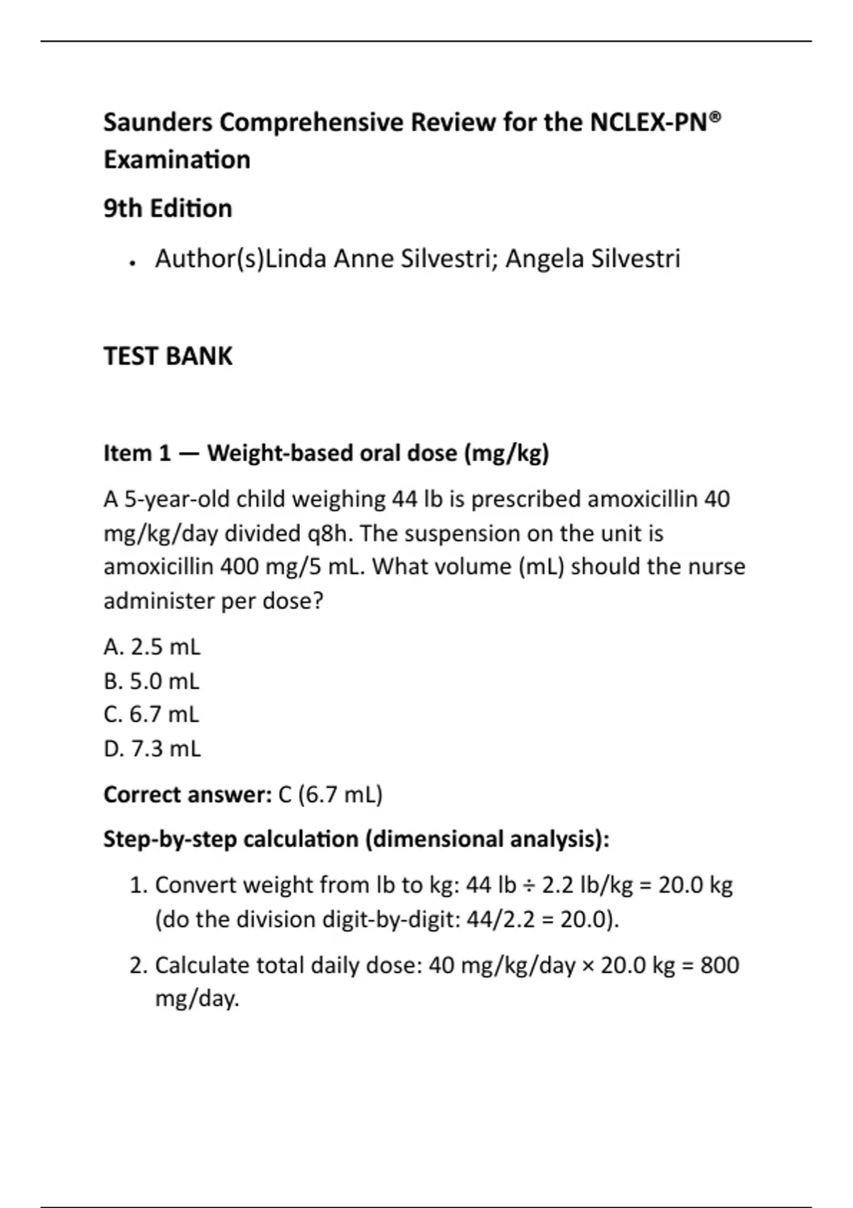 , • Correct (3.3 mL): proper conversion lb→kg, total mg/day,