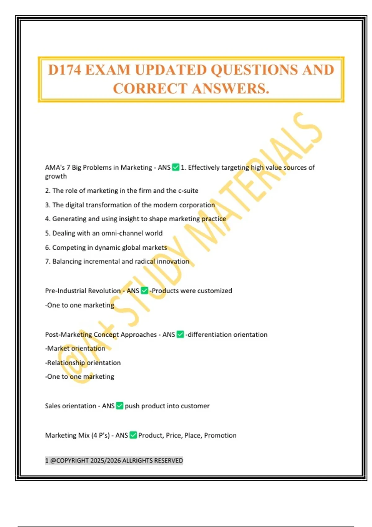 D174 EXAM UPDATED QUESTIONS AND