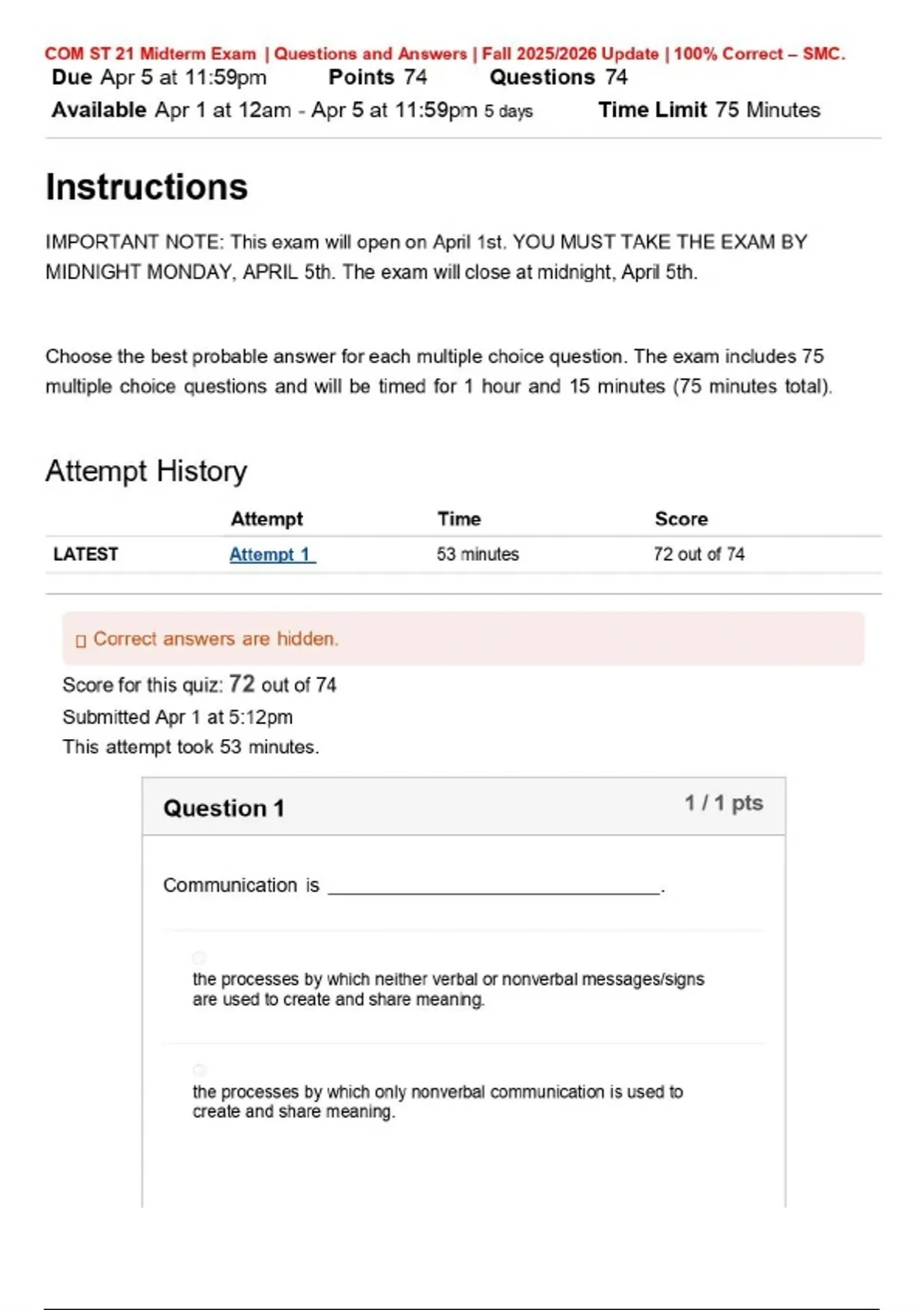 COM ST 21 Midterm Exam | Questions and Answers | Fall 2025/2026 Update | 100% Correct – SMC.