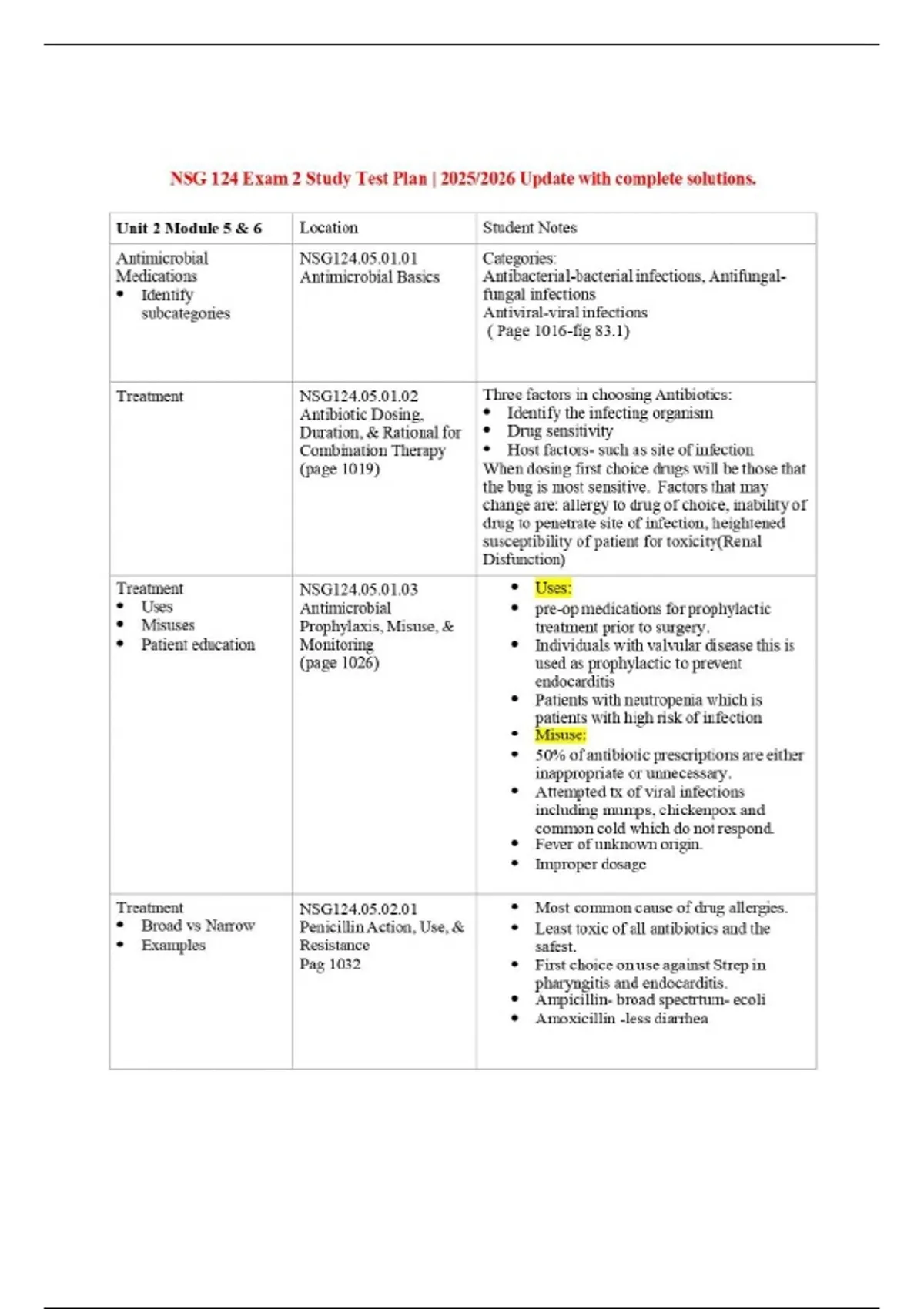 Summary NSG 124 Exam 2 Study Test Plan | 2025/2026 Update with complete solutions.