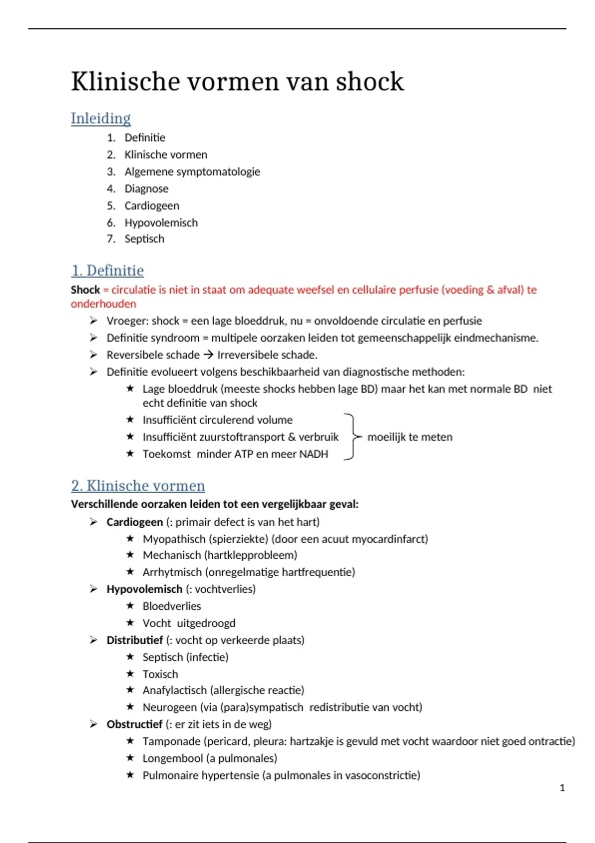 Samenvatting shock en orgaanfalen 1 - deel 2 Kliniek shock