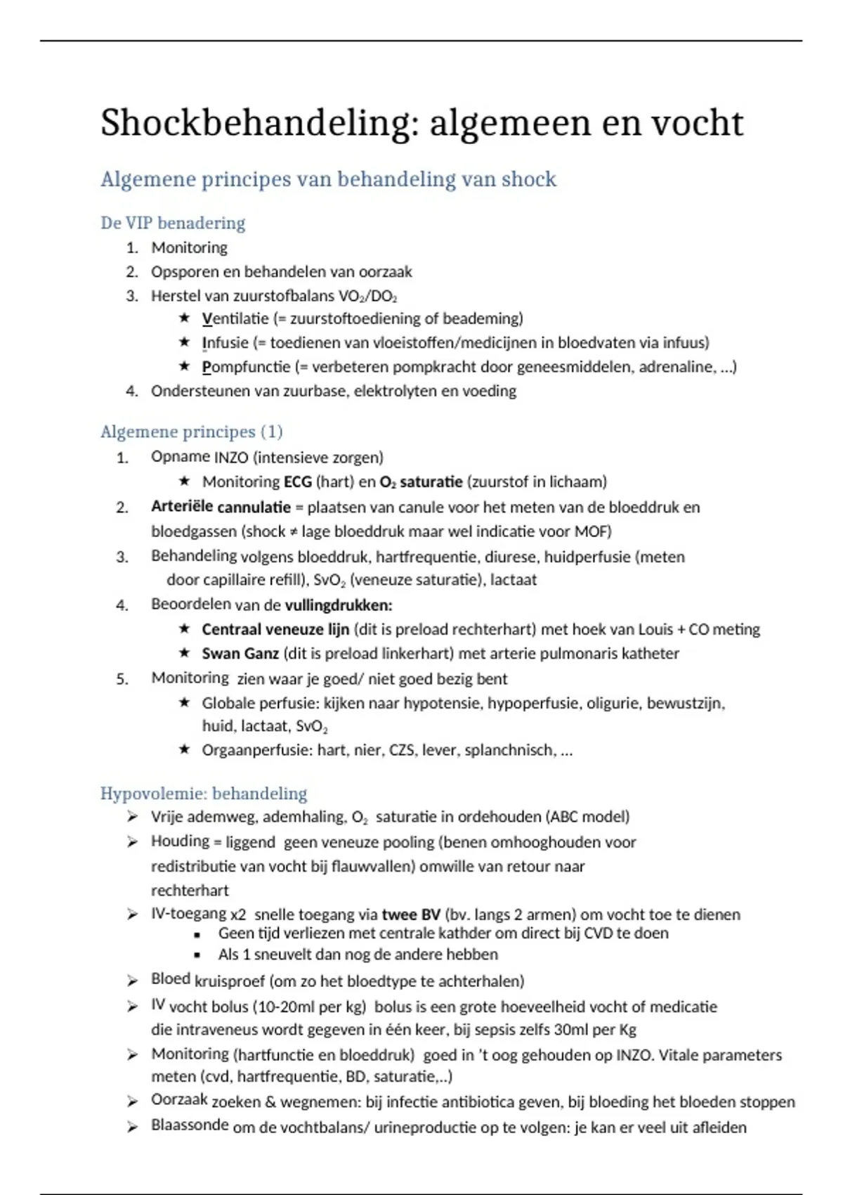 Samenvatting shock en orgaanfalen 1 - deel 4 Shockbehandeling
