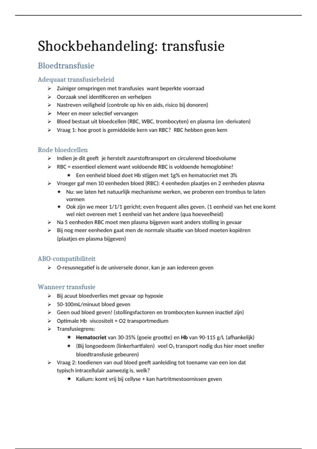 Samenvatting shock en orgaanfalen 1 - deel 5 shockbehandeling transfusie