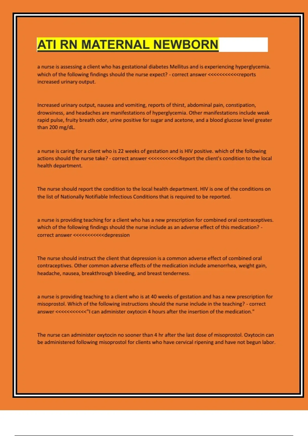 ATI RN Maternal Newborn Exam 2025 – Latest Study Guide, Test Bank & Practice Questions
