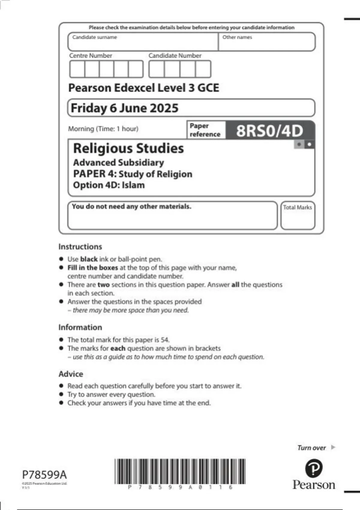 edexcel religious studies 8rs0 4d paper 4 islam june 2025edexcel