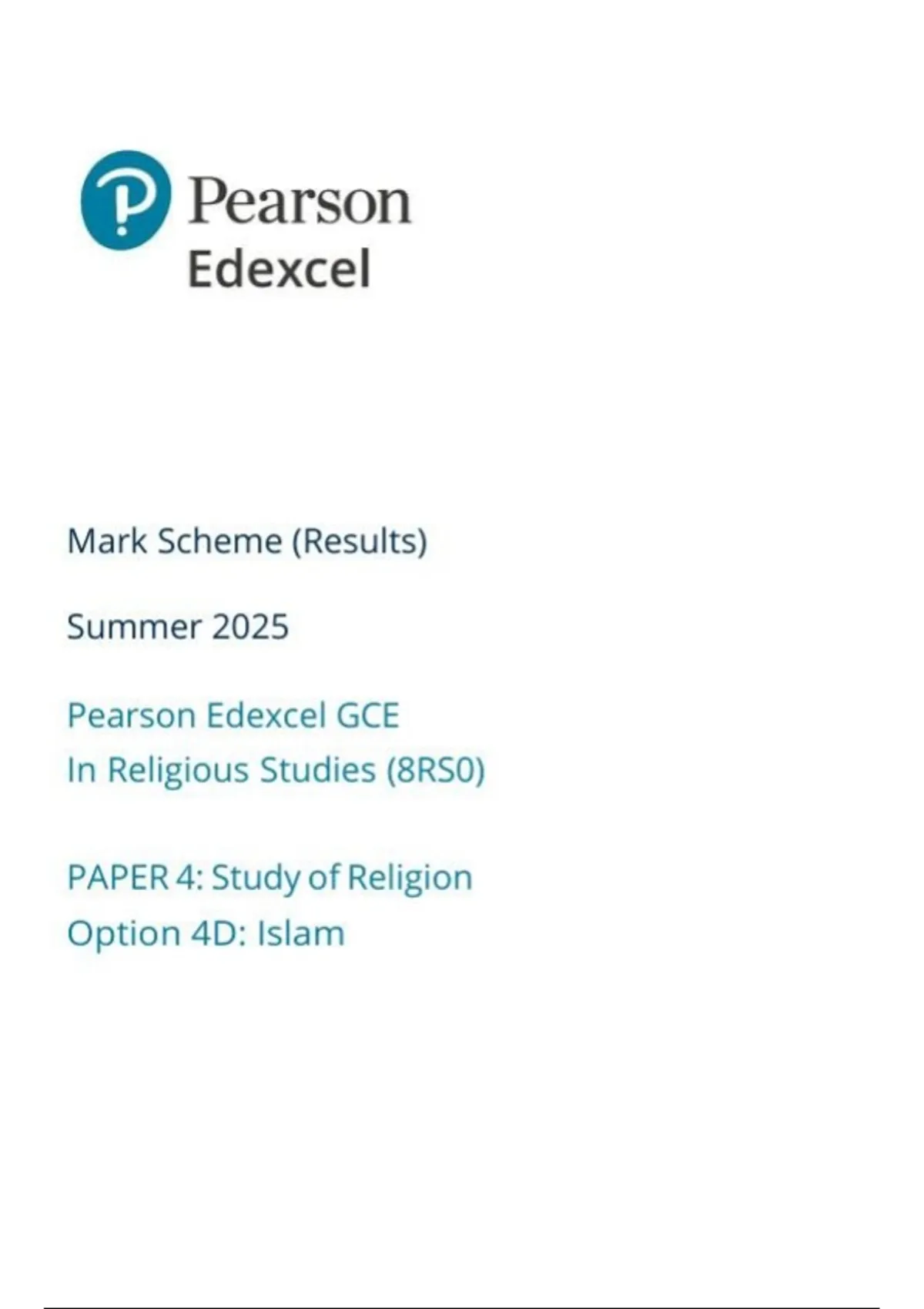 EDEXCEL religious studies 8rs0-4d paper 4-Islam mark scheme june-2025