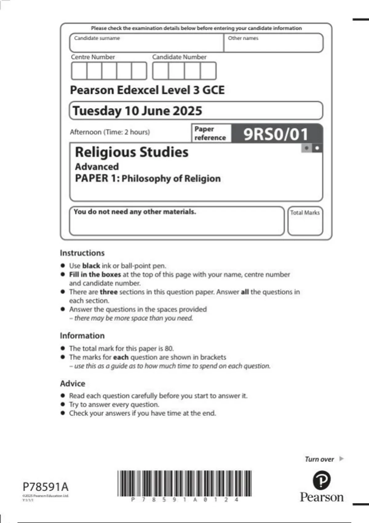 edexcel religious studies 9rs0 01 paper 1 philosophy of religion june 2025edexcel