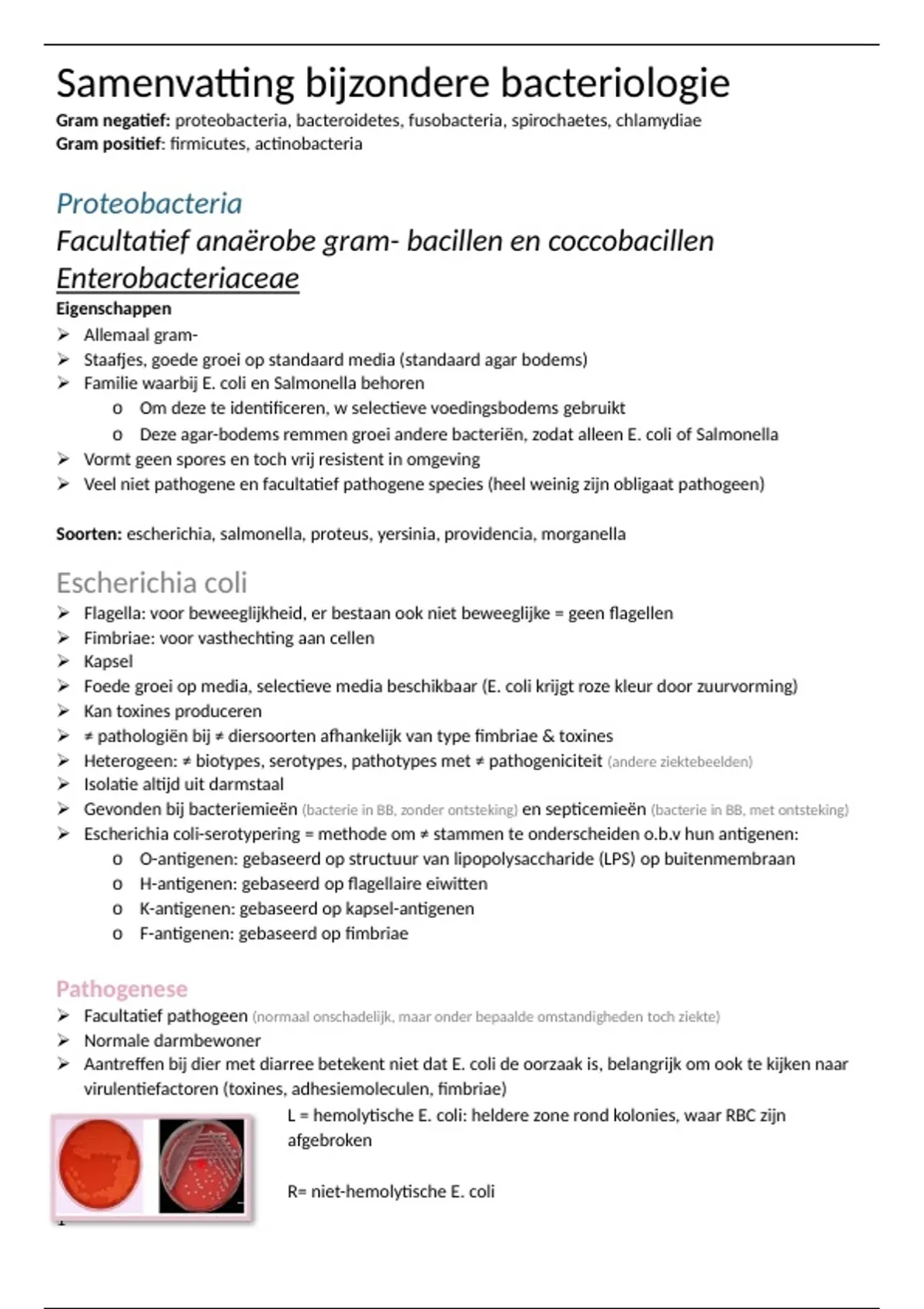 L = hemolytische E. coli: heldere zone rond kolonies, waar RBC zijn
