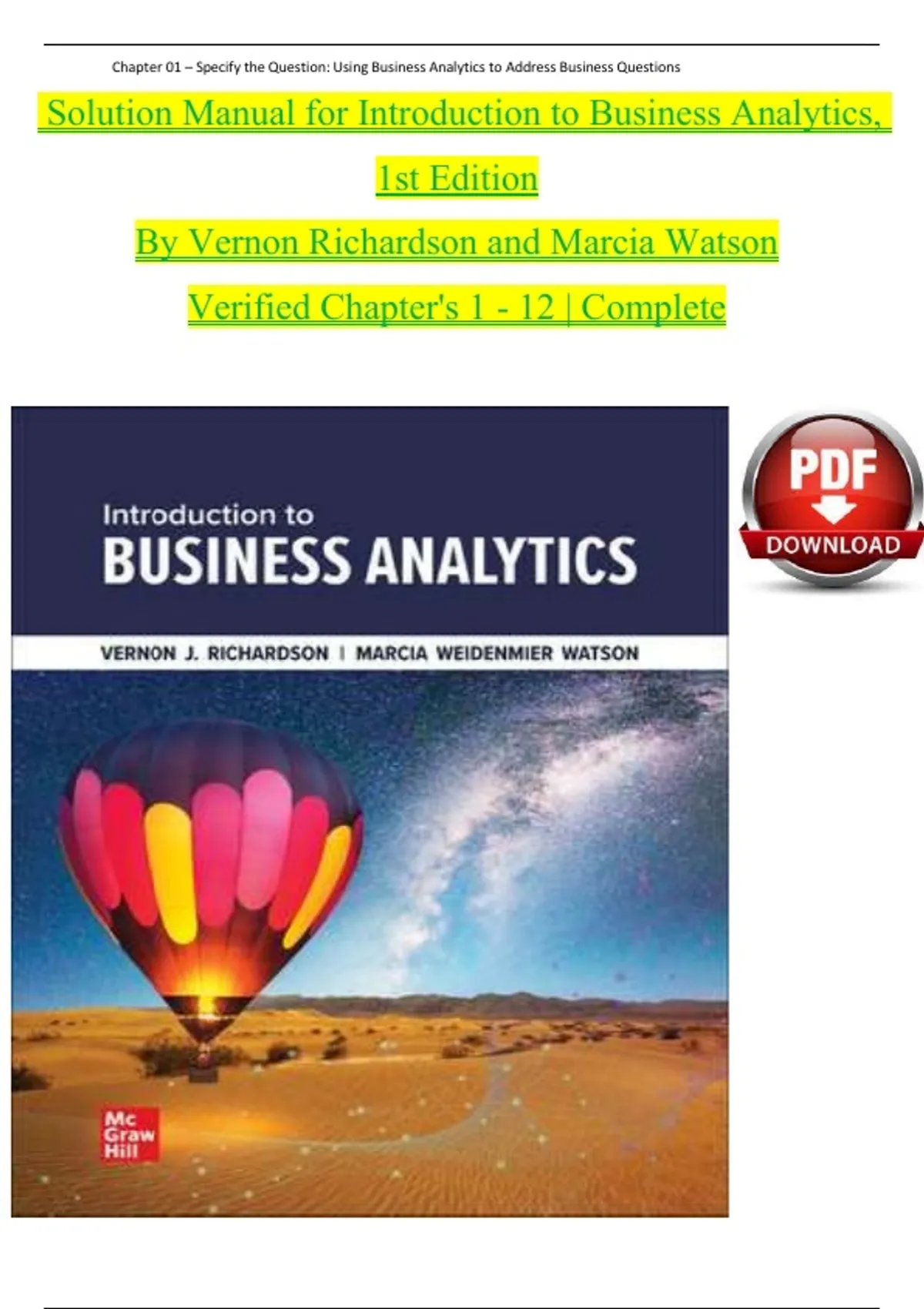 j Solution Manual for Introduction to Business Analytics,