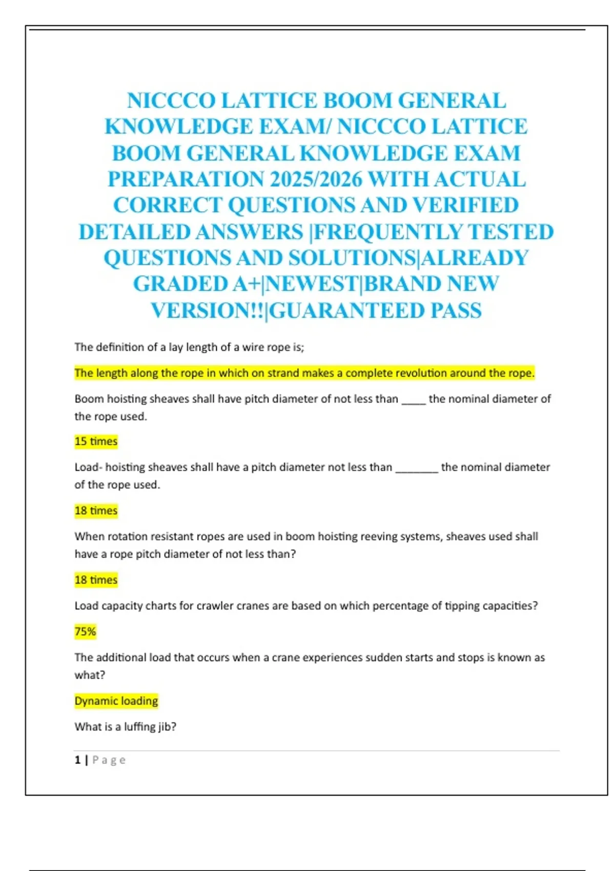 KNOWLEDGE EXAM/ NICCCO LATTICE