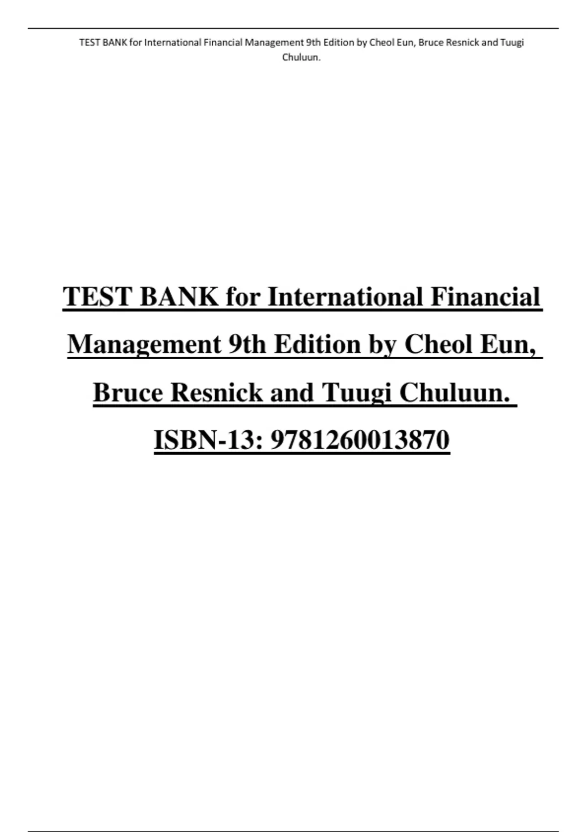 , TEST BANK for International Financial Management 9th Edition by Cheol Eun, Bruce Resnick and Tuugi
