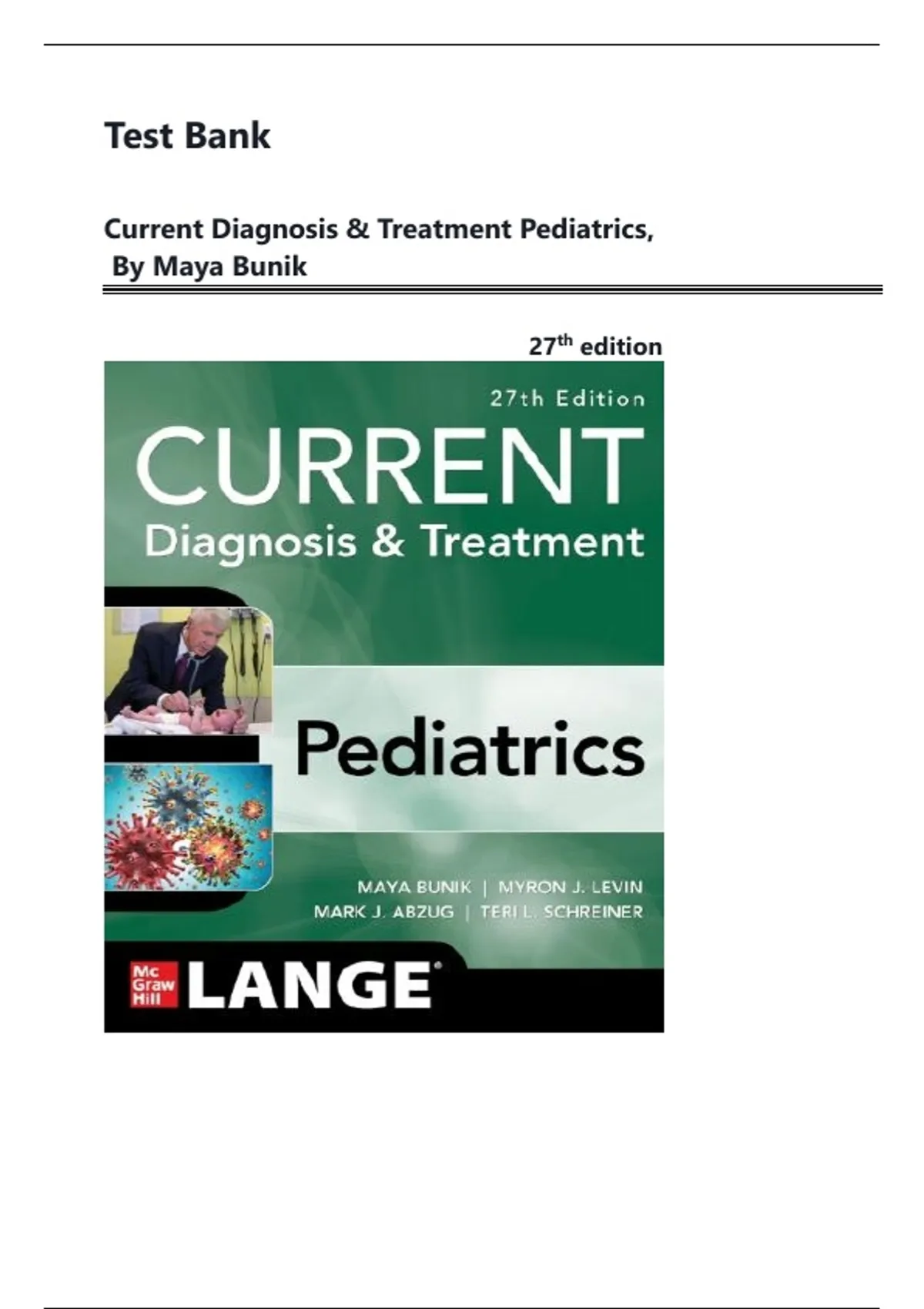 Current Diagnosis And Treatment Pediatrics, 27th Edition Test Bank Multiple Choice