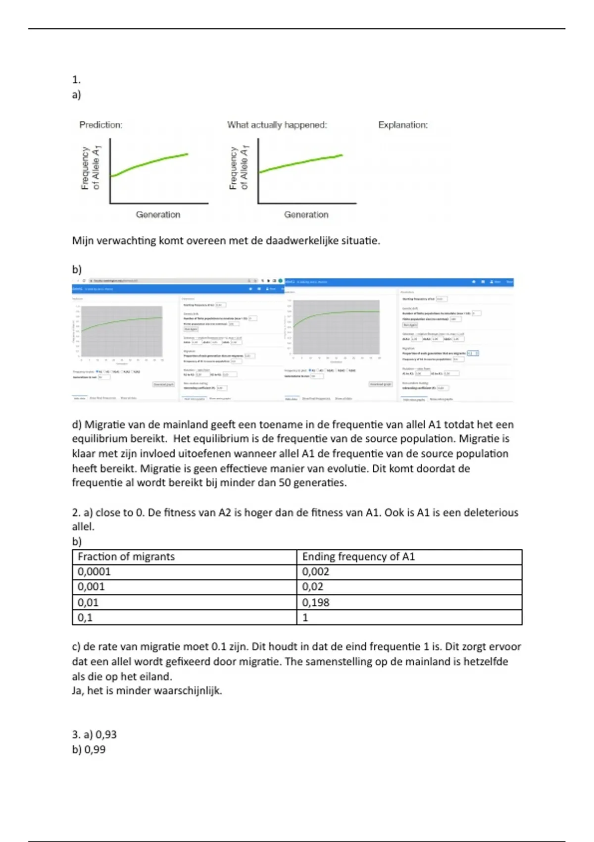 c) de rate van migra0e moet 0.1 zijn. Dit houdt in dat de eind frequen0e 1 is. Dit zorgt ervoor