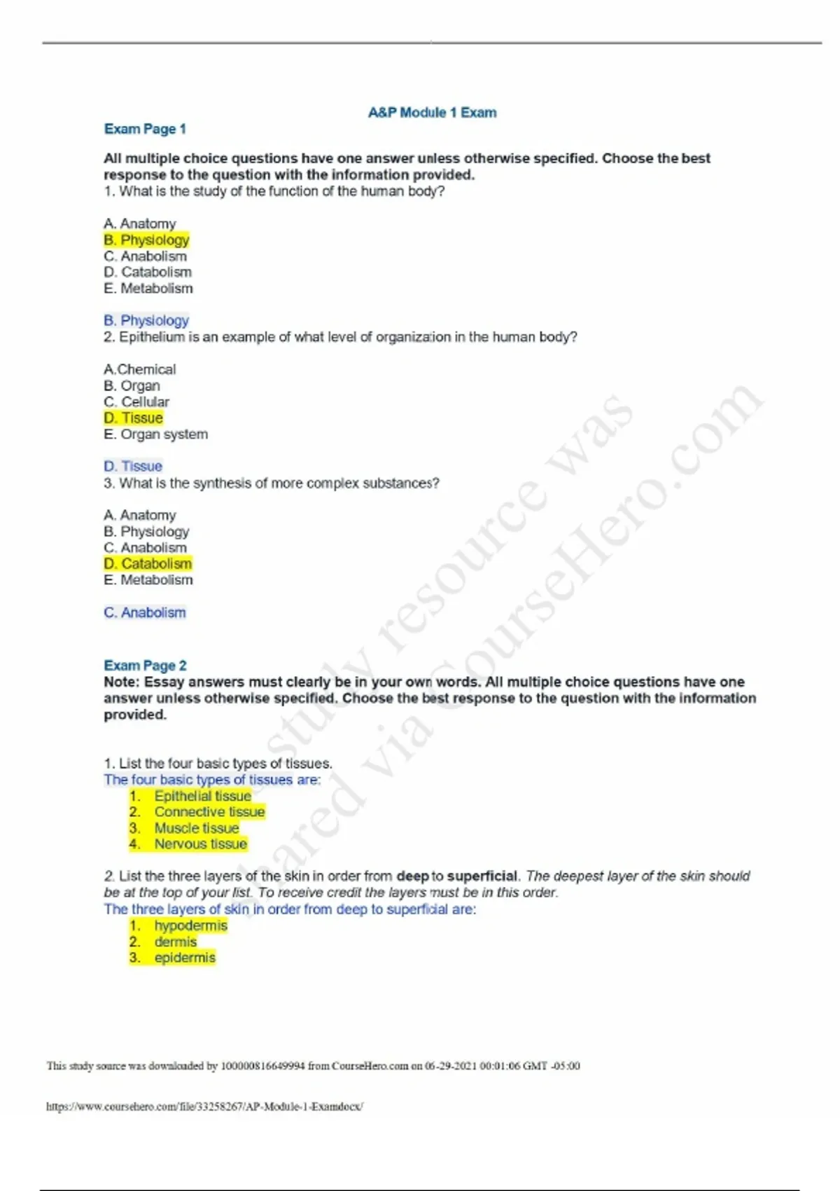A P 1 101 Module 1 Exam Questions and Answers Portage Learning Graded A+
