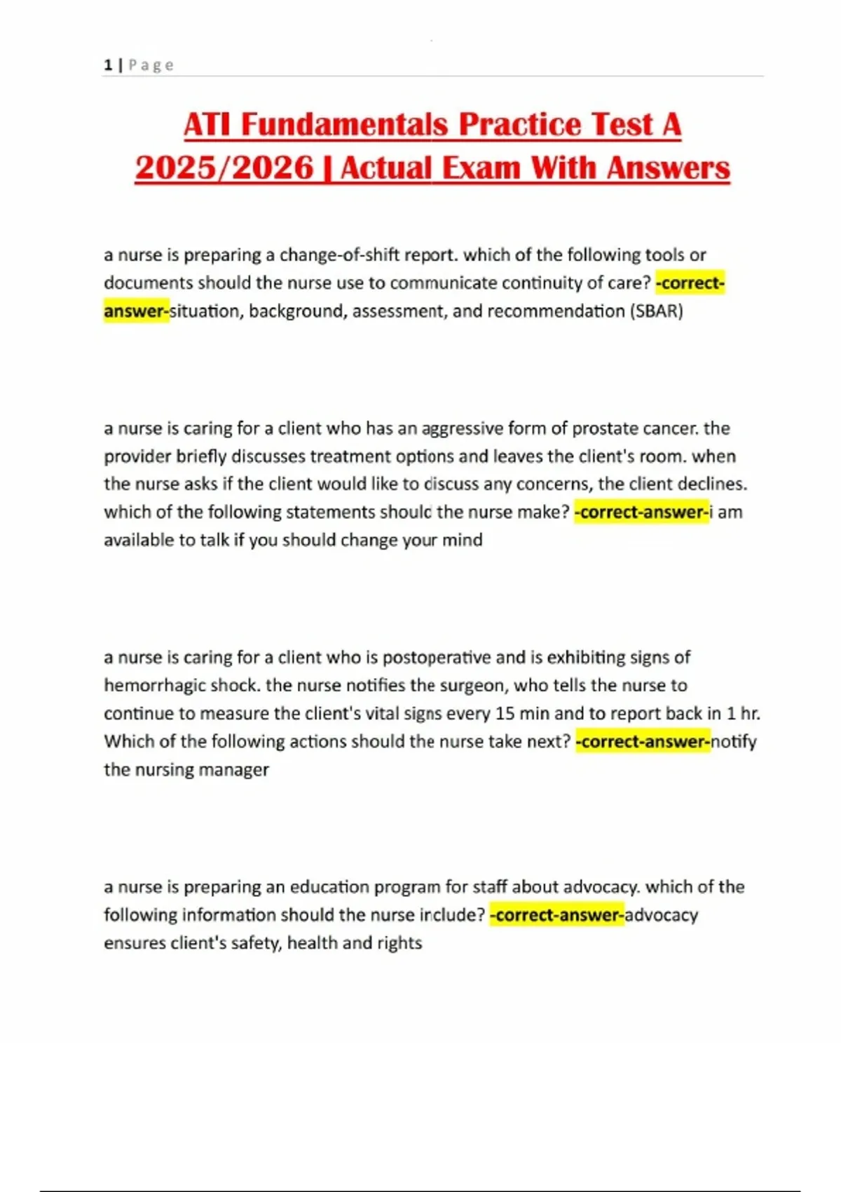 ATI Fundamentals Practice Test A Questions and Answers Graded A+