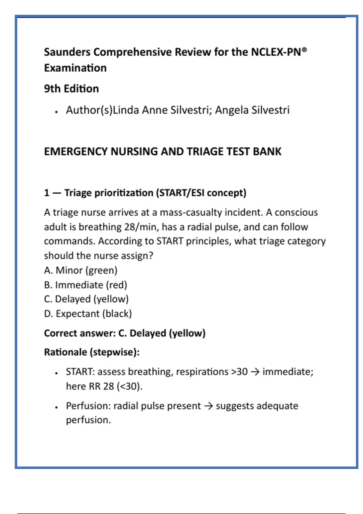 EMERGENCY NURSING AND TRIAGE TEST BANK