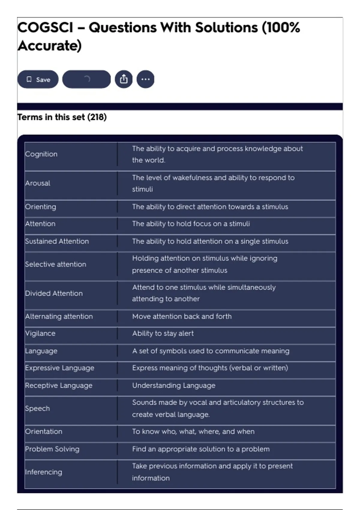 Attention The ability to hold focus on a stimuli