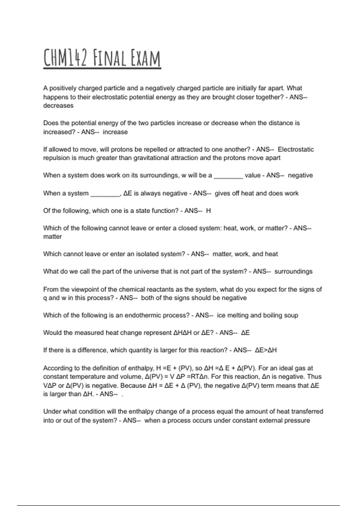 enthalpy of the system increase or decrease during the process? - ANS-- the enthalpy of the