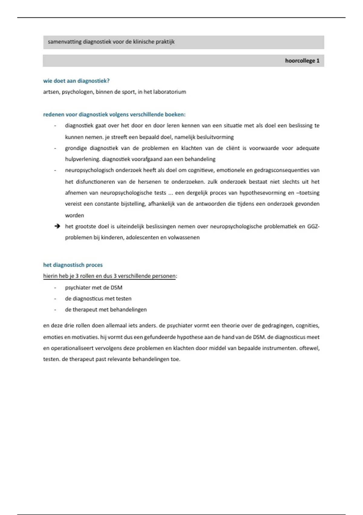 samenvatting diagnostiek voor de klinische praktijk