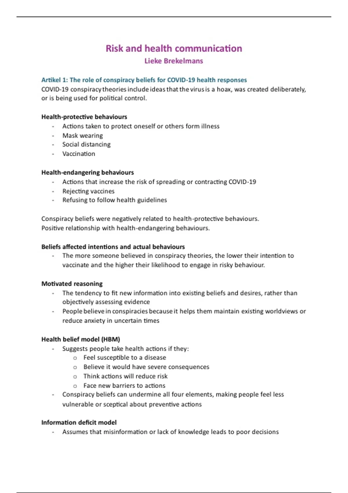 Artikel 1: The role of conspiracy beliefs for COVID-19 health responses