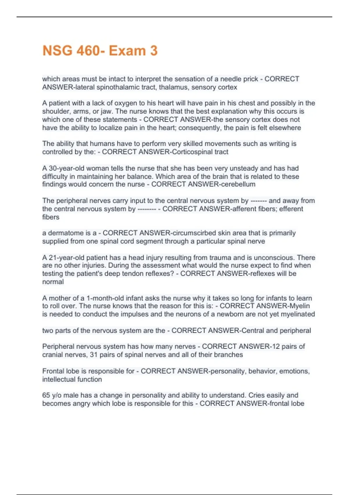 examination? - CORRECT ANSWER-complete neurologic examination