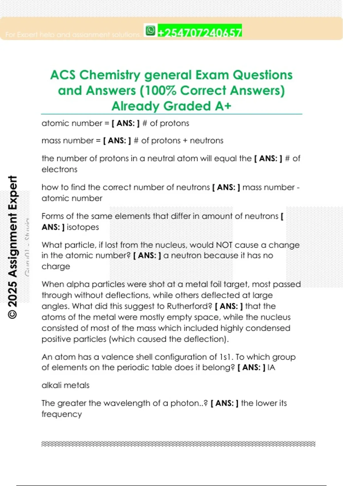 ACS Chemistry general Exam Questions and Answers (100% Correct Answers) Already Graded A+