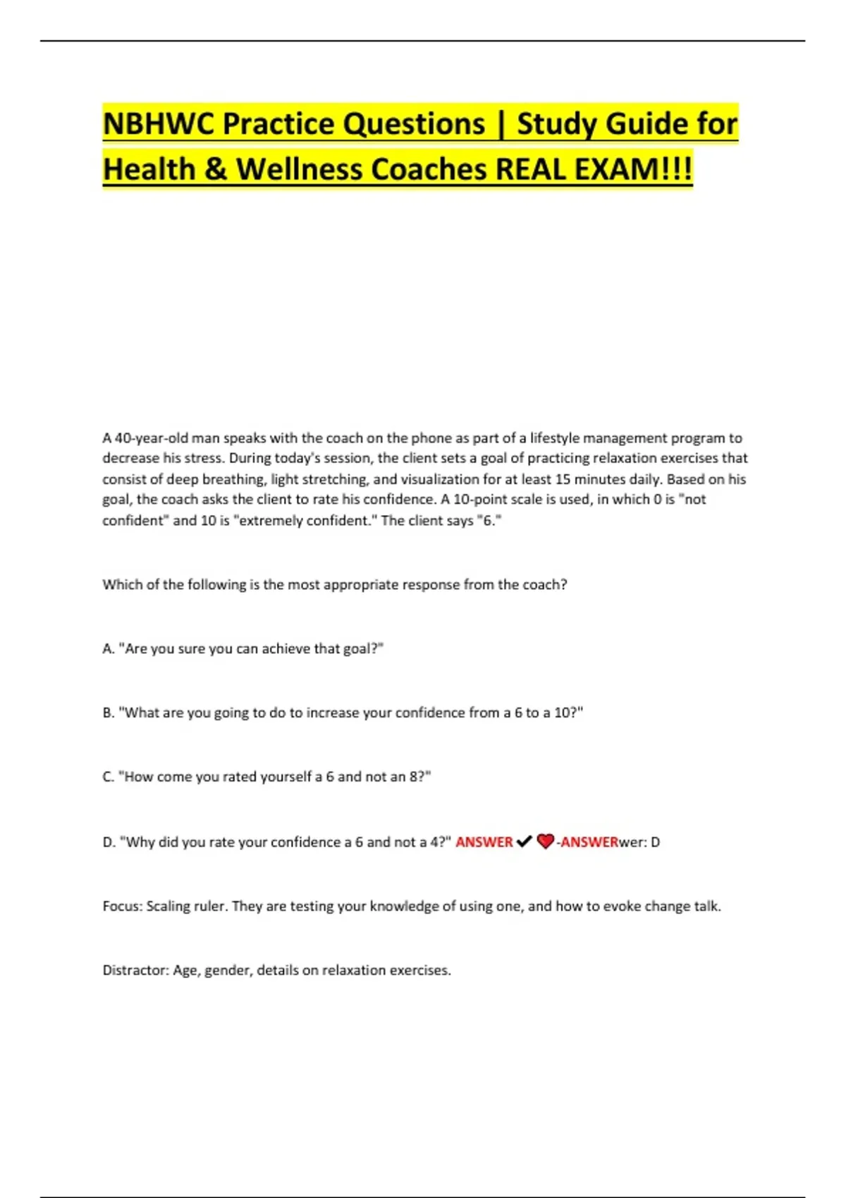 Get ready for the 2025 NBHWC Exam with real practice test questions and detailed scenario explanations. Master behavior change strategies, coaching techniques, and core competencies to pass the NBHWC certification on your first attempt