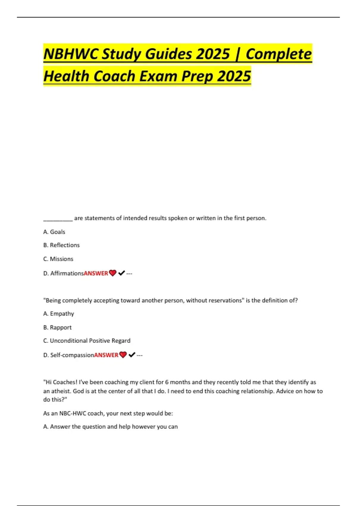 D. AffirmationsANSWER ✔---