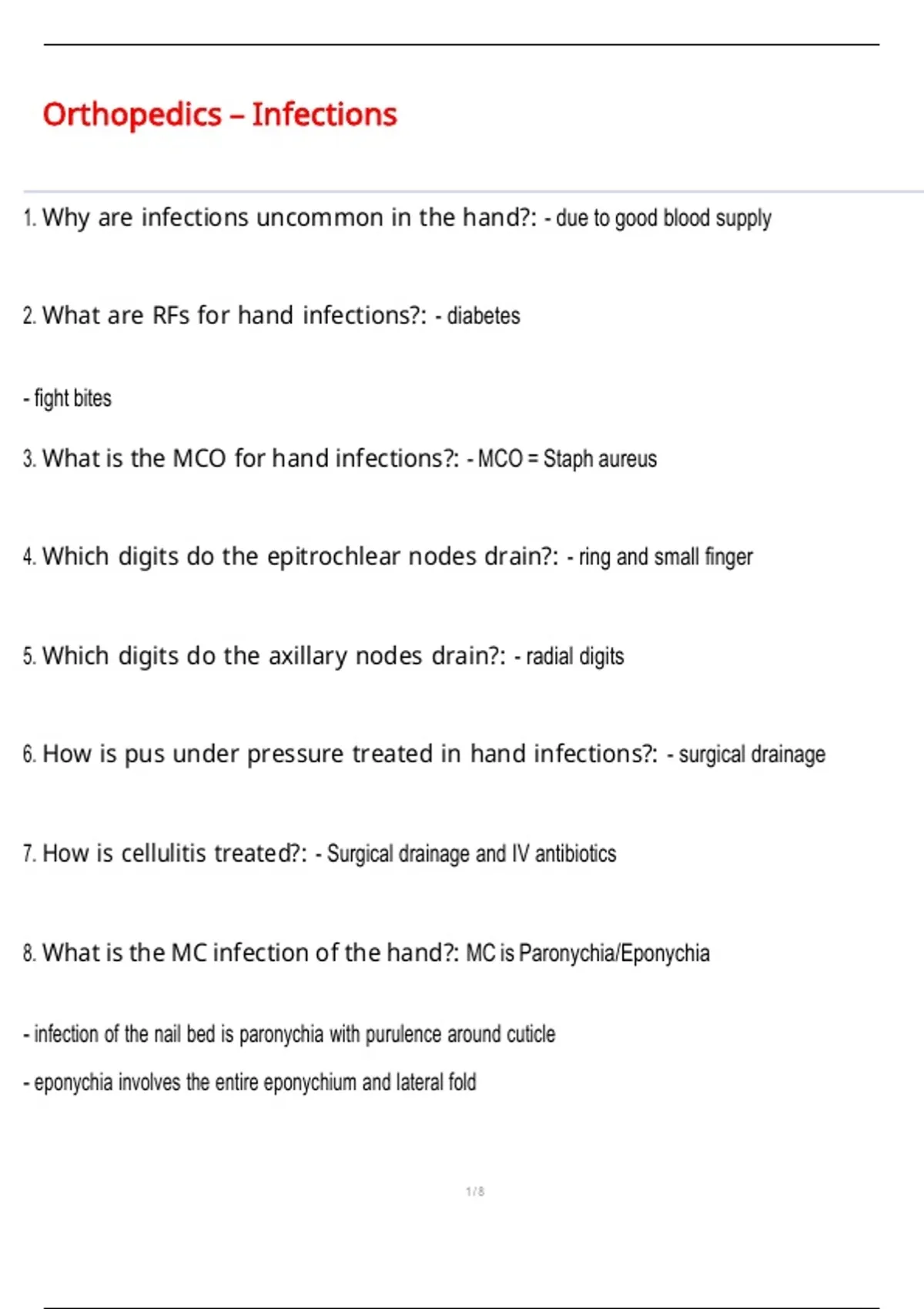 1. Why are infections uncommon in the hand?: - due to good blood supply