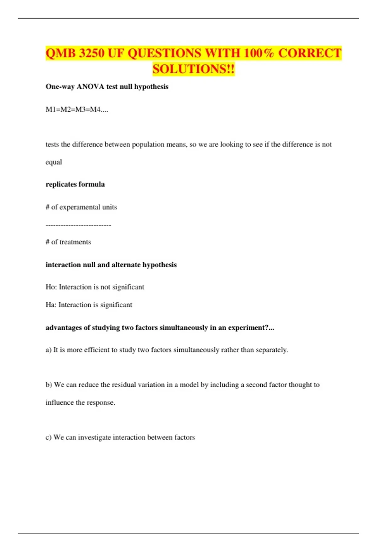 QMB 3250 UF QUESTIONS WITH 100% CORRECT