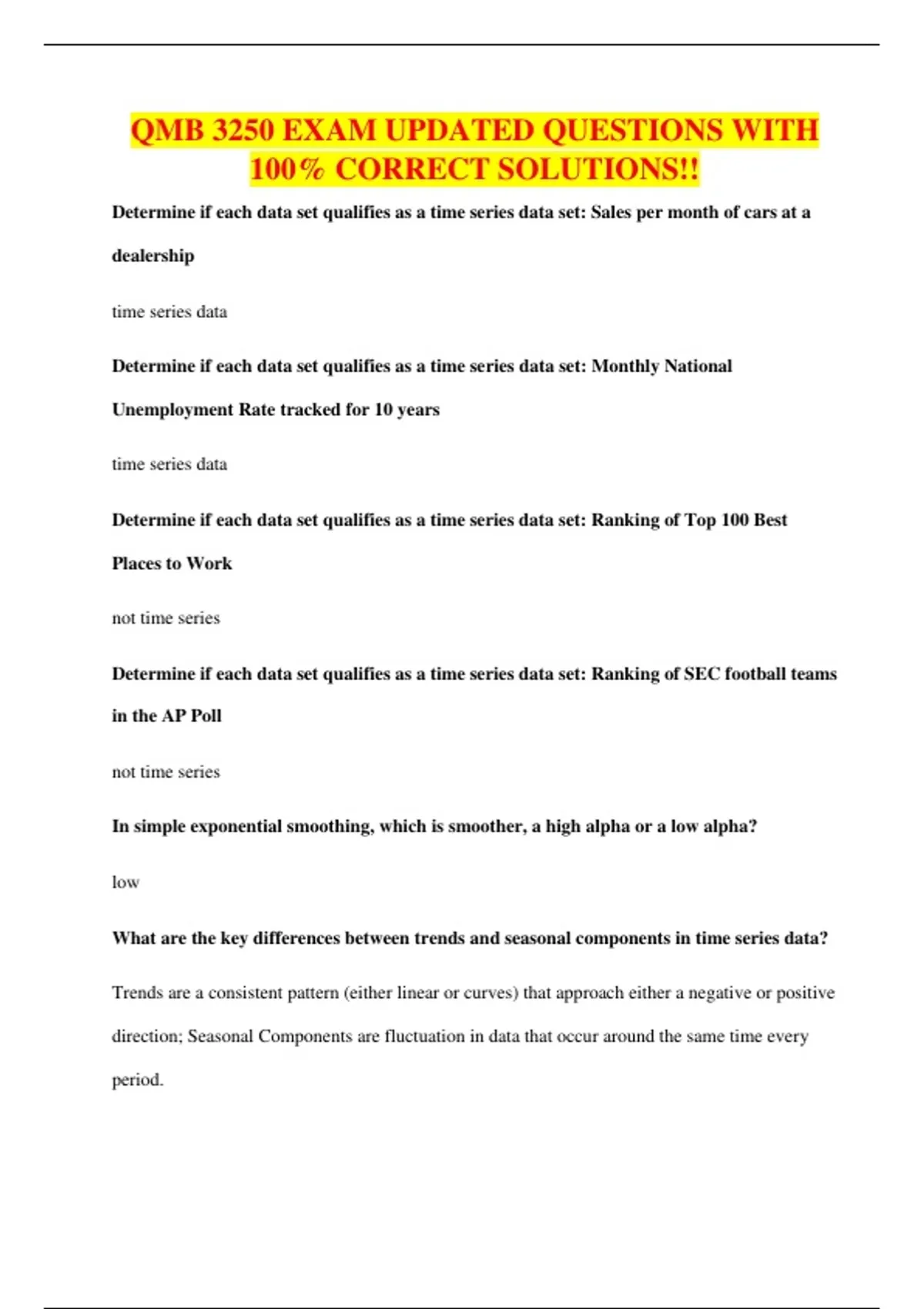 QMB 3250 EXAM UPDATED QUESTIONS WITH 100% CORRECT SOLUTIONS