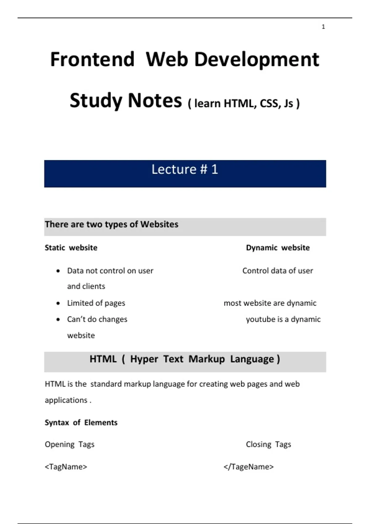 Lecture # 1