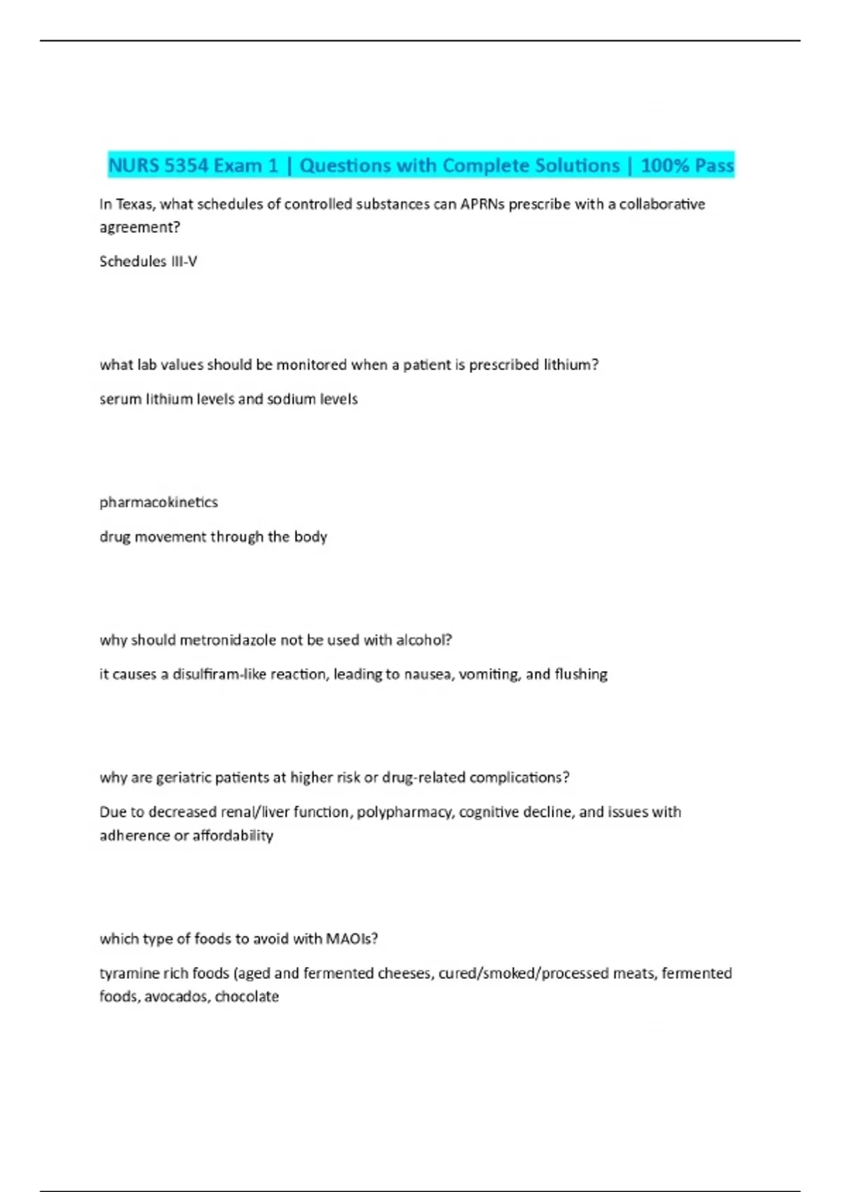 NURS 5354 Exam 1 | Questions with Complete Solutions | 100% Pass