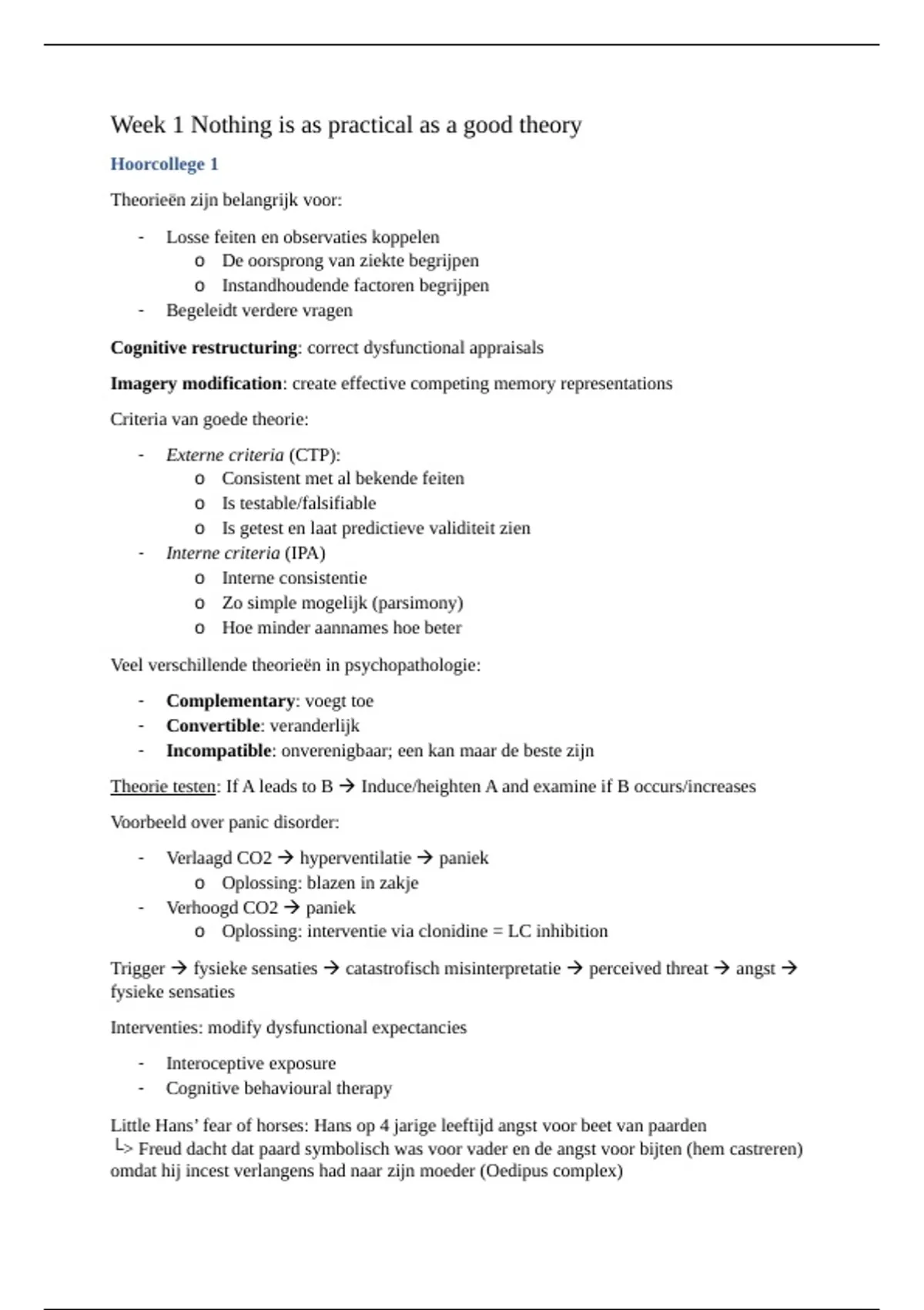 Goede behandeling voor paniek/angst stoornissen: CBT -> voorkomen van angst neemt