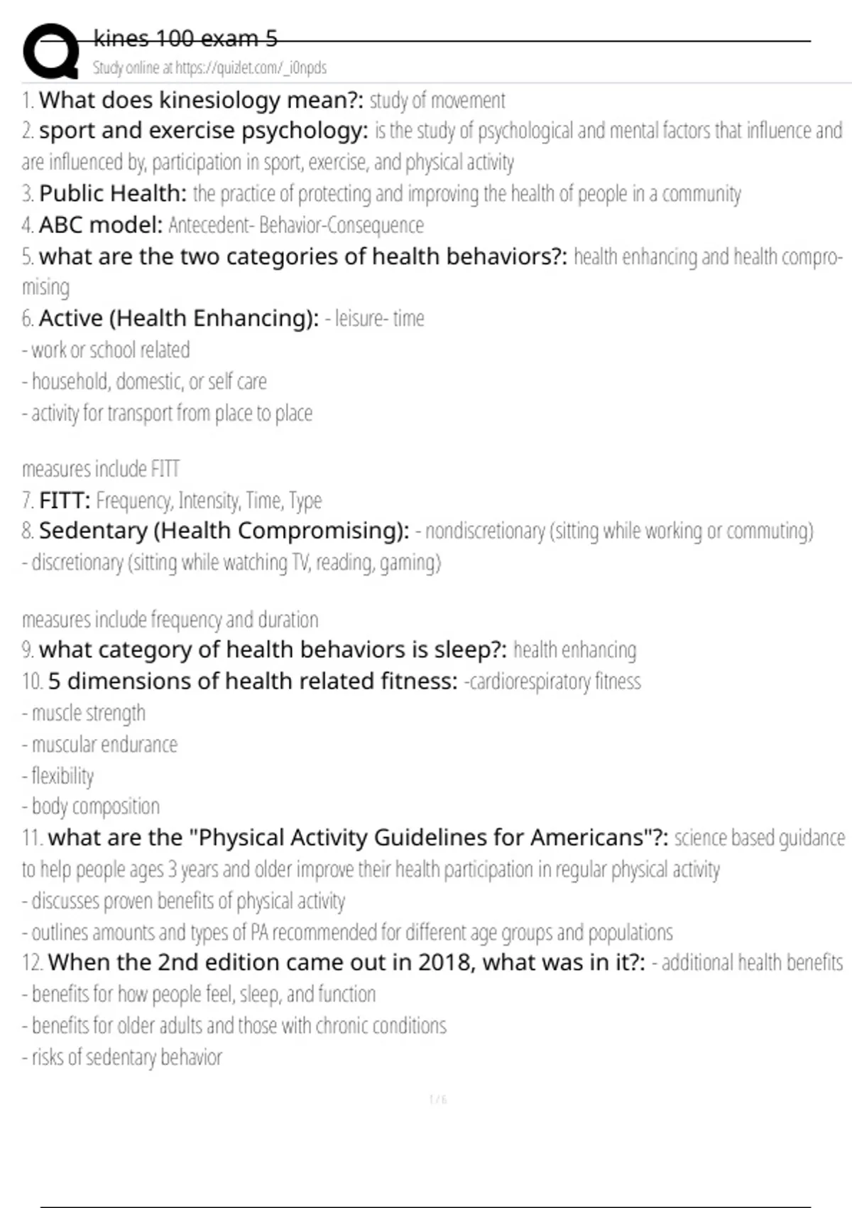 1. What does kinesiology mean?: study of movement