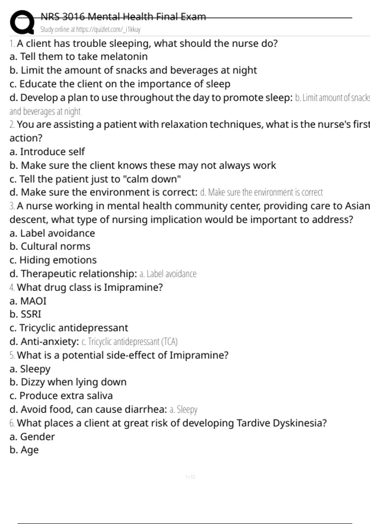 , NRS 3016 Mental Health Final Exam