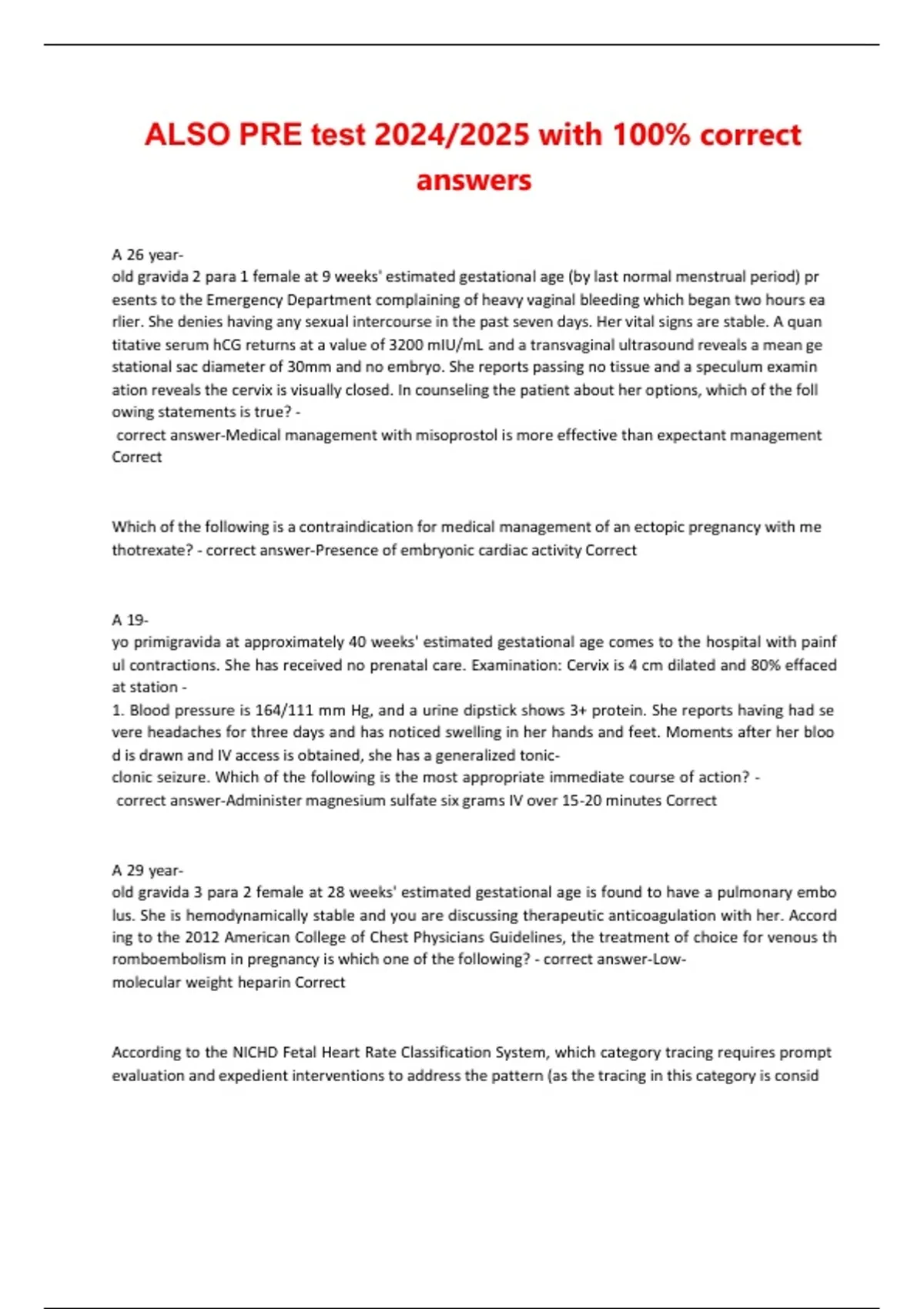 correct answer-Category III electronic fetal monitoring tracing Correct