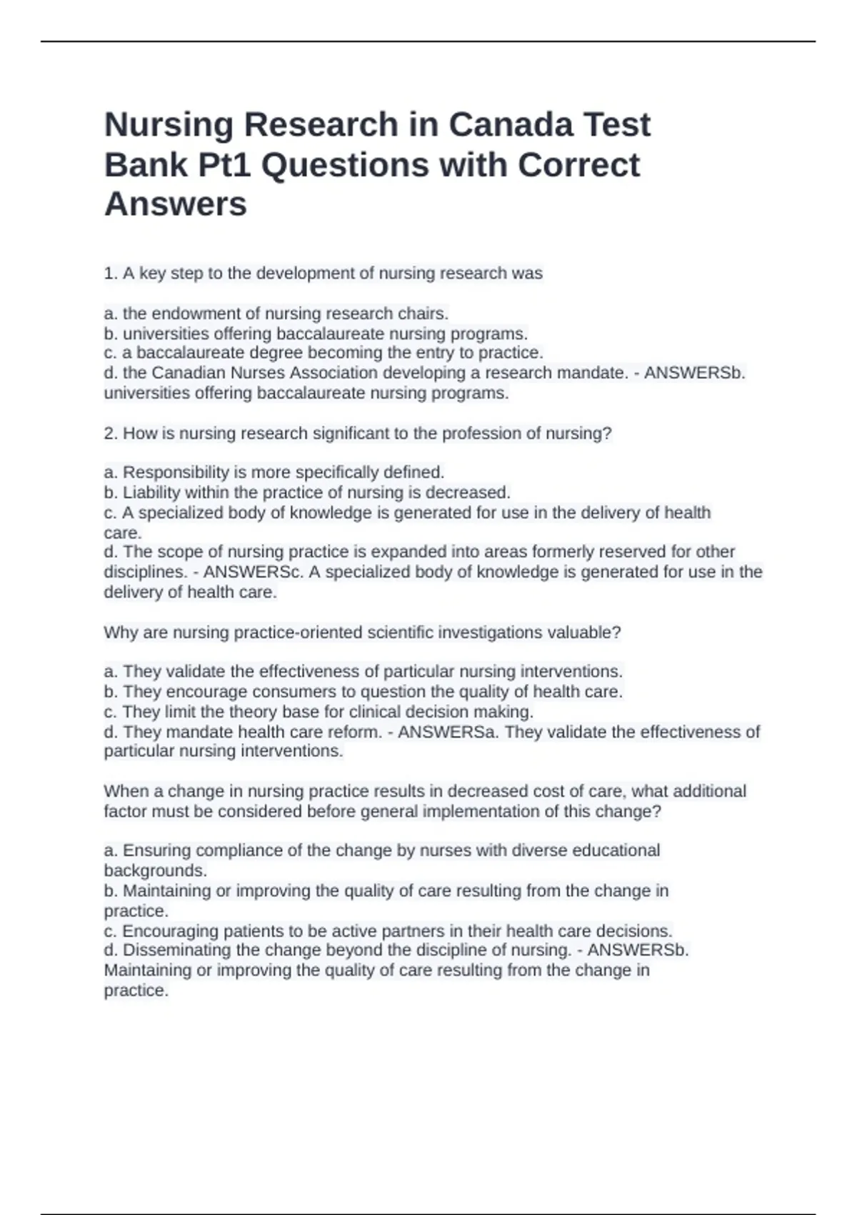 d. the Canadian Nurses Association developing a research mandate. - ANSWERSb.