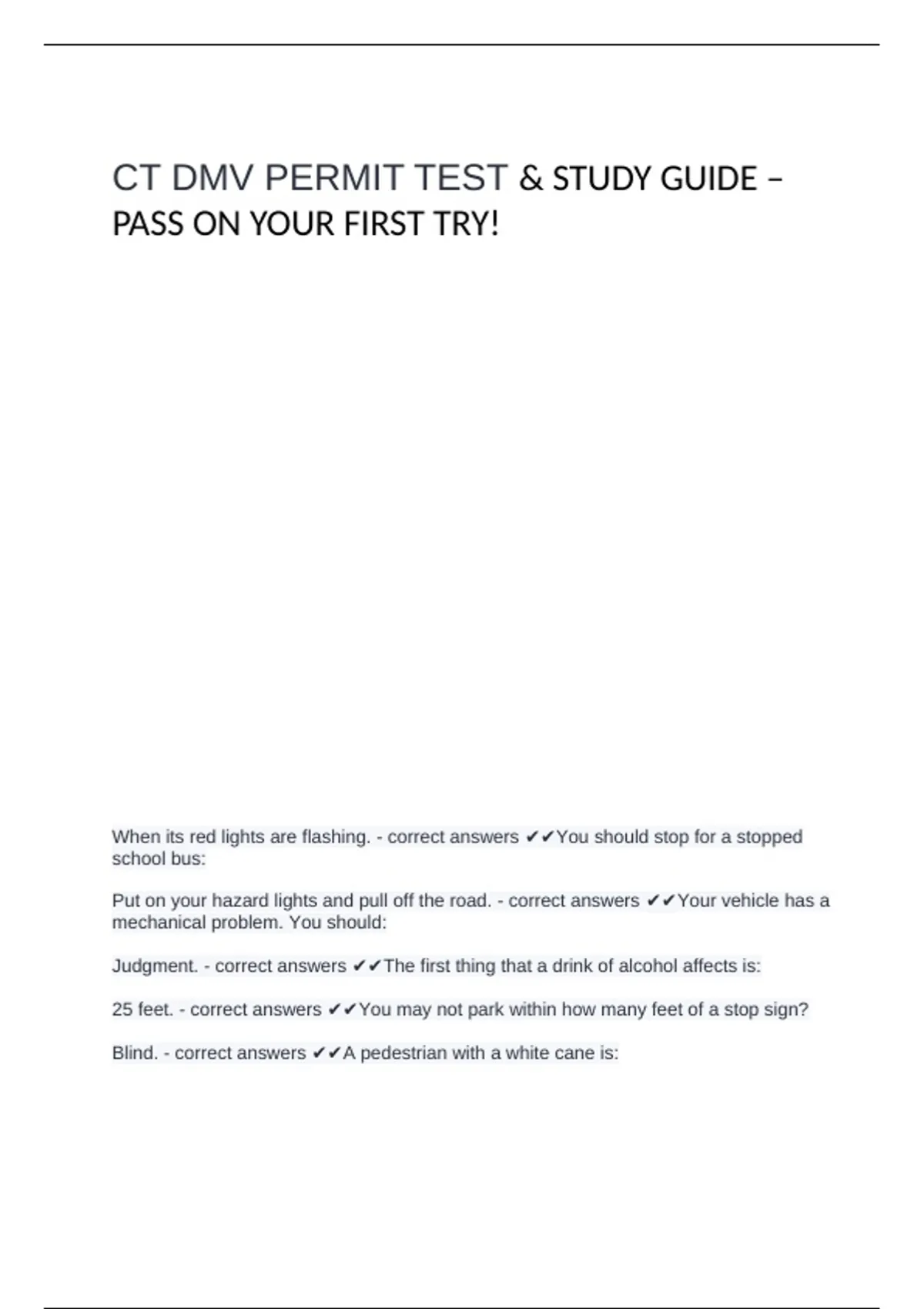 CT DMV PERMIT TEST & STUDY GUIDE –