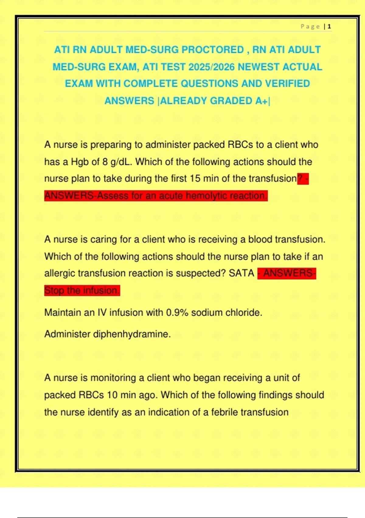 MED-SURG EXAM, ATI TEST 2025/2026 NEWEST ACTUAL