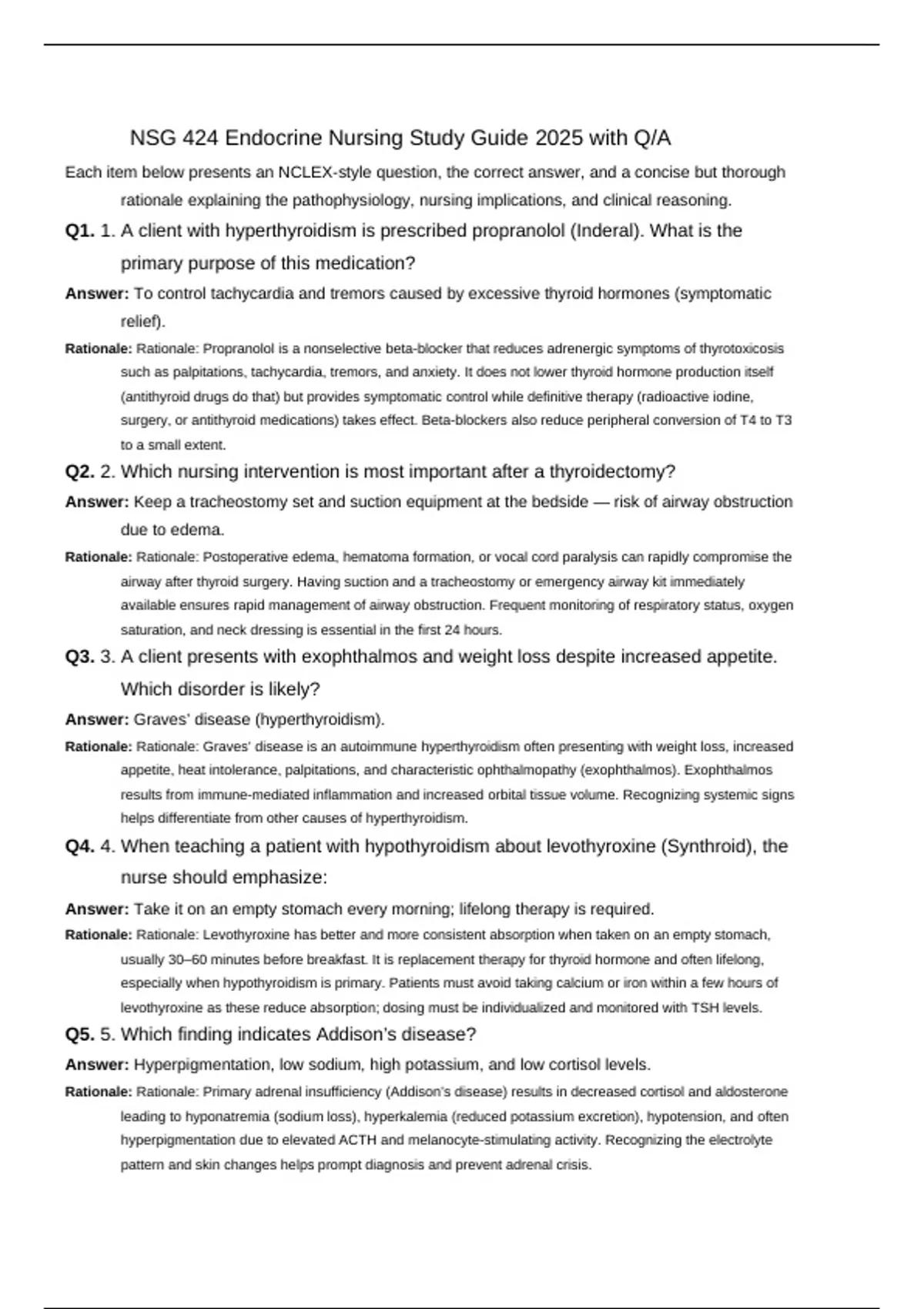 Q1. 1. A client with hyperthyroidism is prescribed propranolol (Inderal). What is the