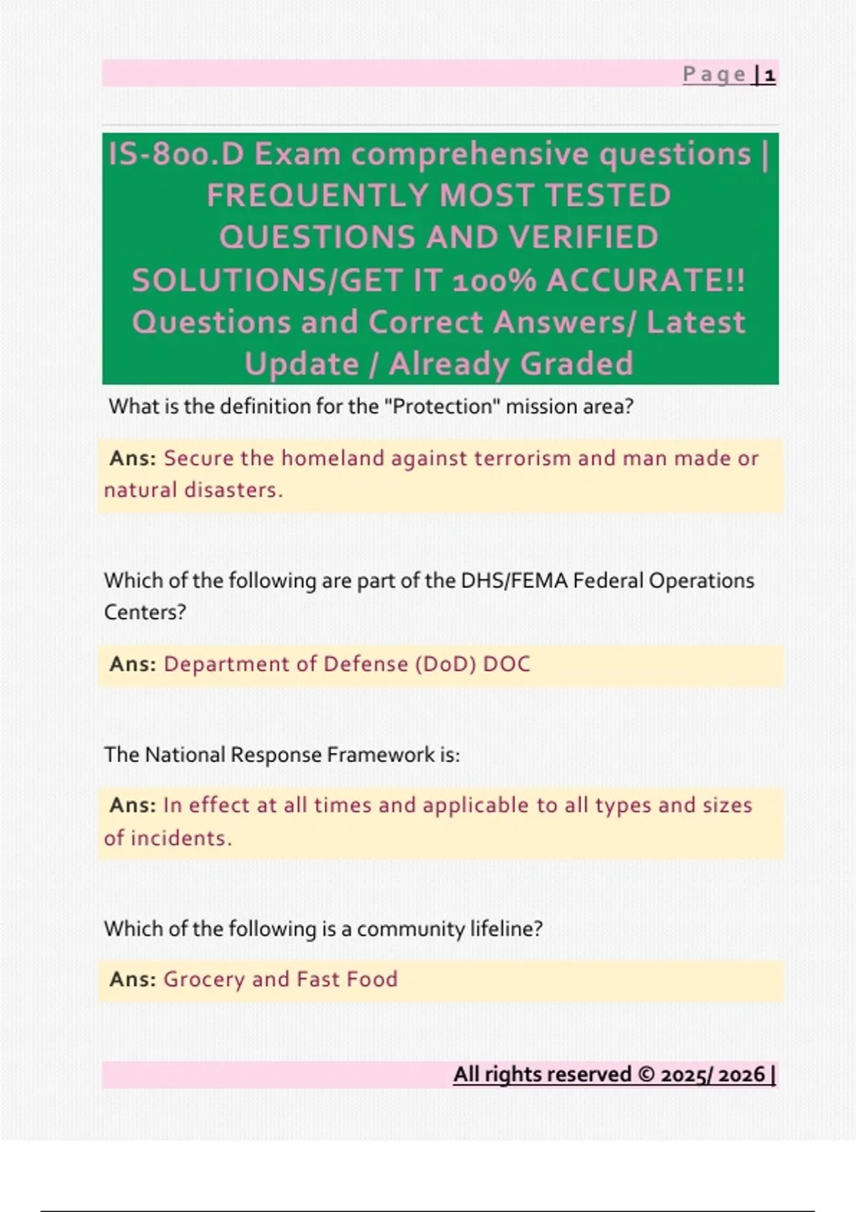 IS-800.D Exam comprehensive questions |