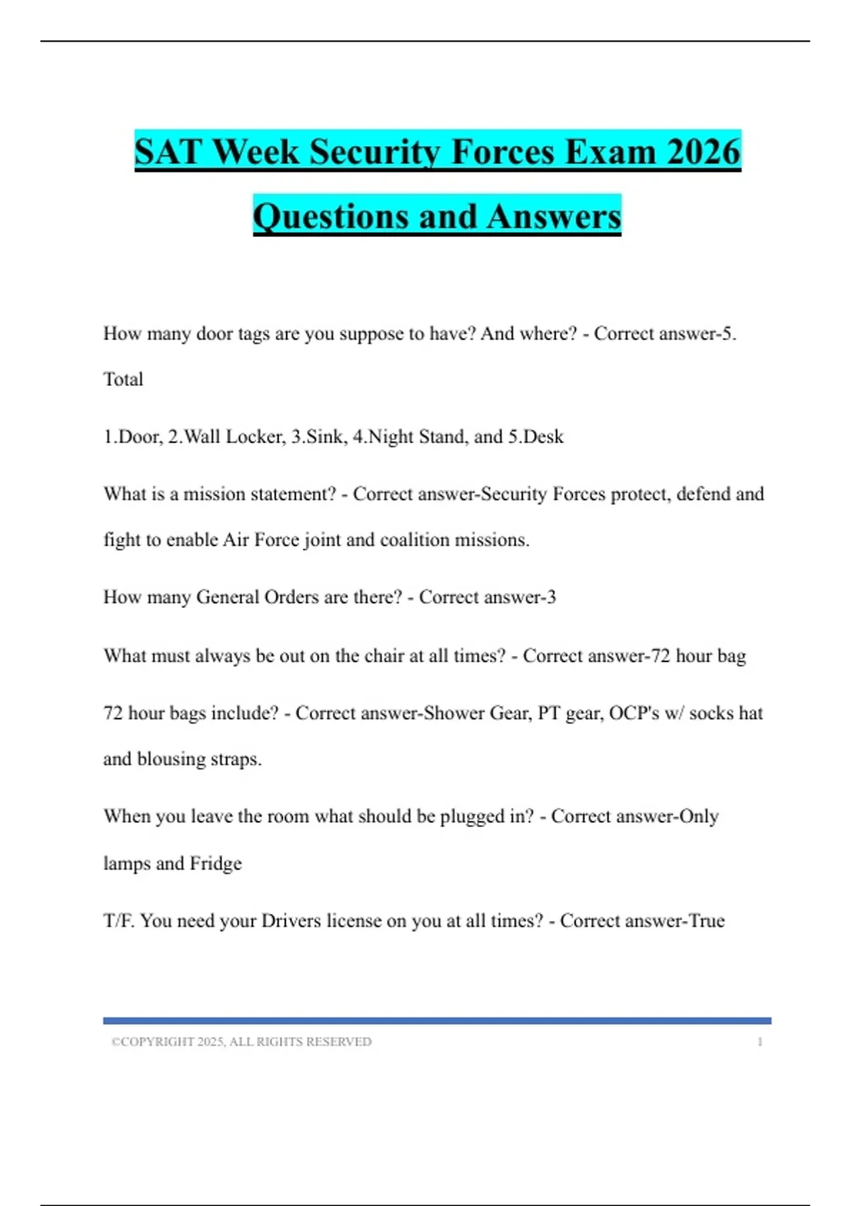 SAT Week Security Forces Exam 2026