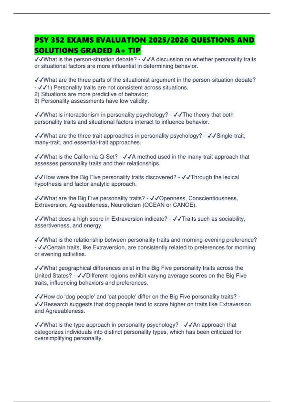 PSY 352 EXAMS EVALUATION 2025/2026 QUESTIONS AND SOLUTIONS GRADED A+ TIP