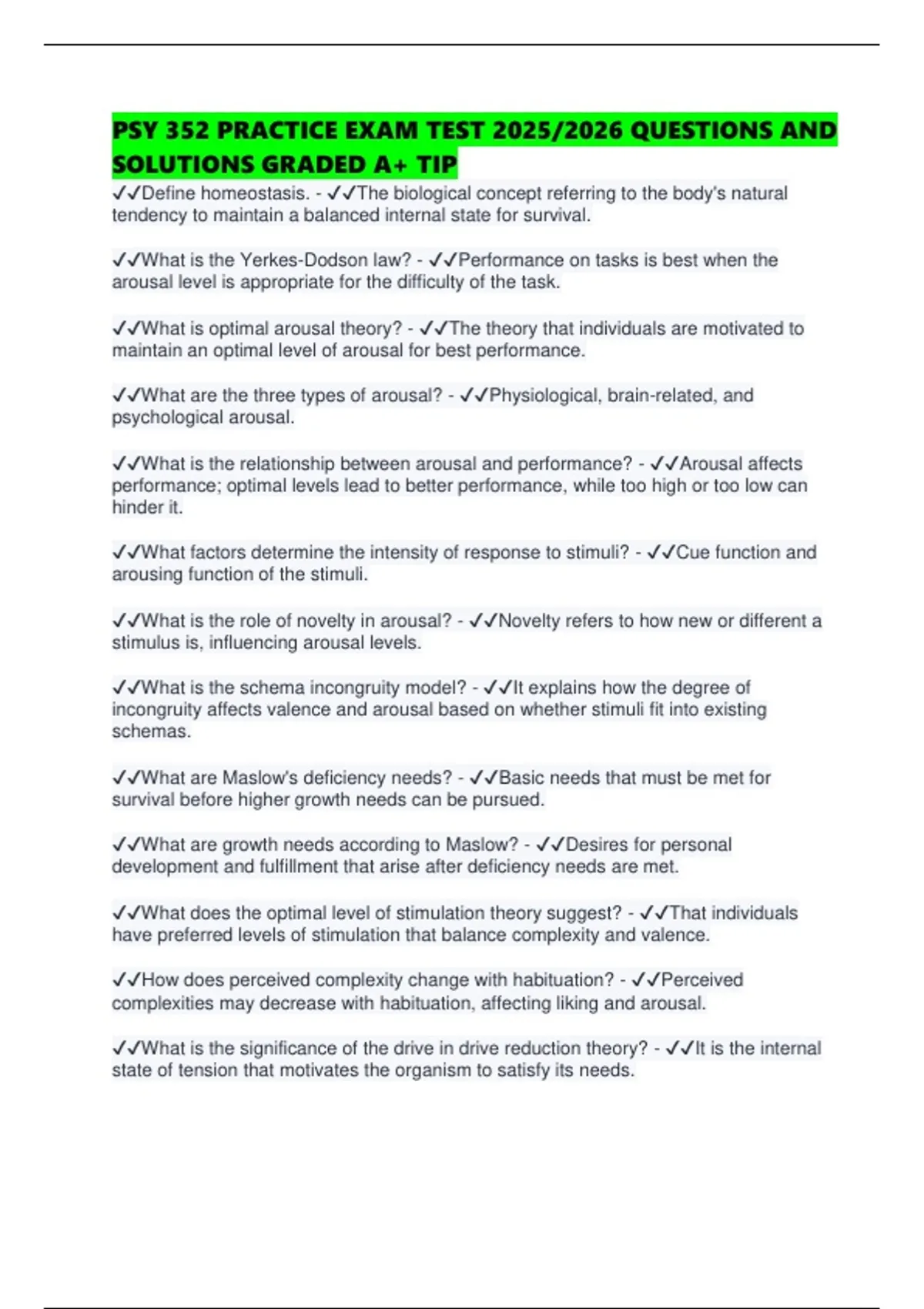 PSY 352 PRACTICE EXAM TEST 2025/2026 QUESTIONS AND SOLUTIONS GRADED A+ TIP